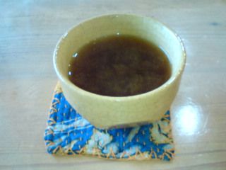 お茶と言うより、味噌汁に近いぐらいの濃い味の渋い飲み物だった。