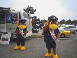 正面に、石川県警のマスコットキャラクターが居たので激写しておきましたよ。敬礼されたんで、撮ったあと敬礼をし返しましたよ。