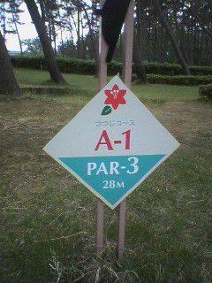最初のコースでとりあえず、パチリ。全長28mのコースって、パットゴルフとしては長いのだそうな。と言うか、このパットゴルフ場は日本で最高レベルにいいコースなんだそうな。